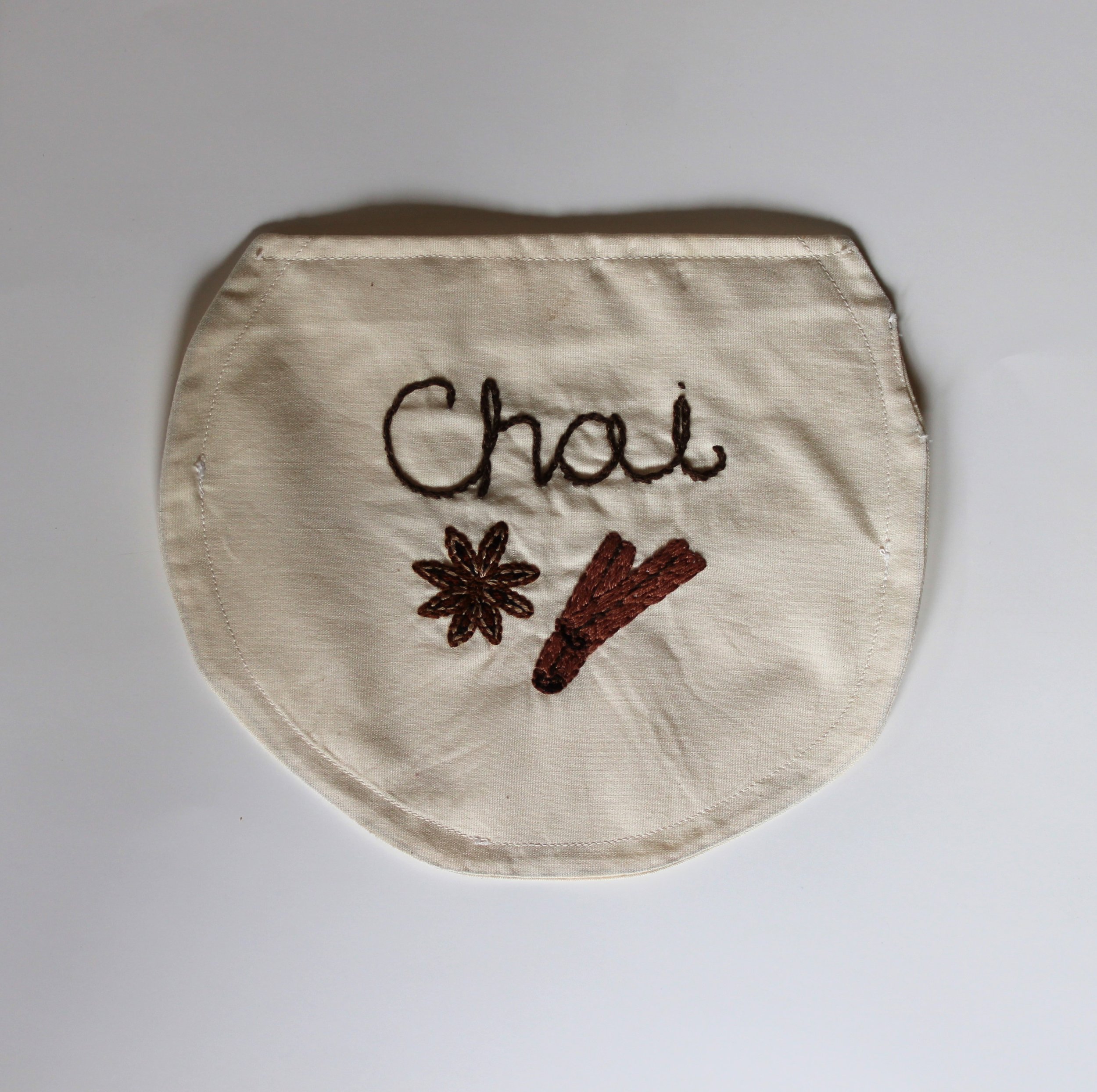 Hand embroidered cloth jar label, 2022